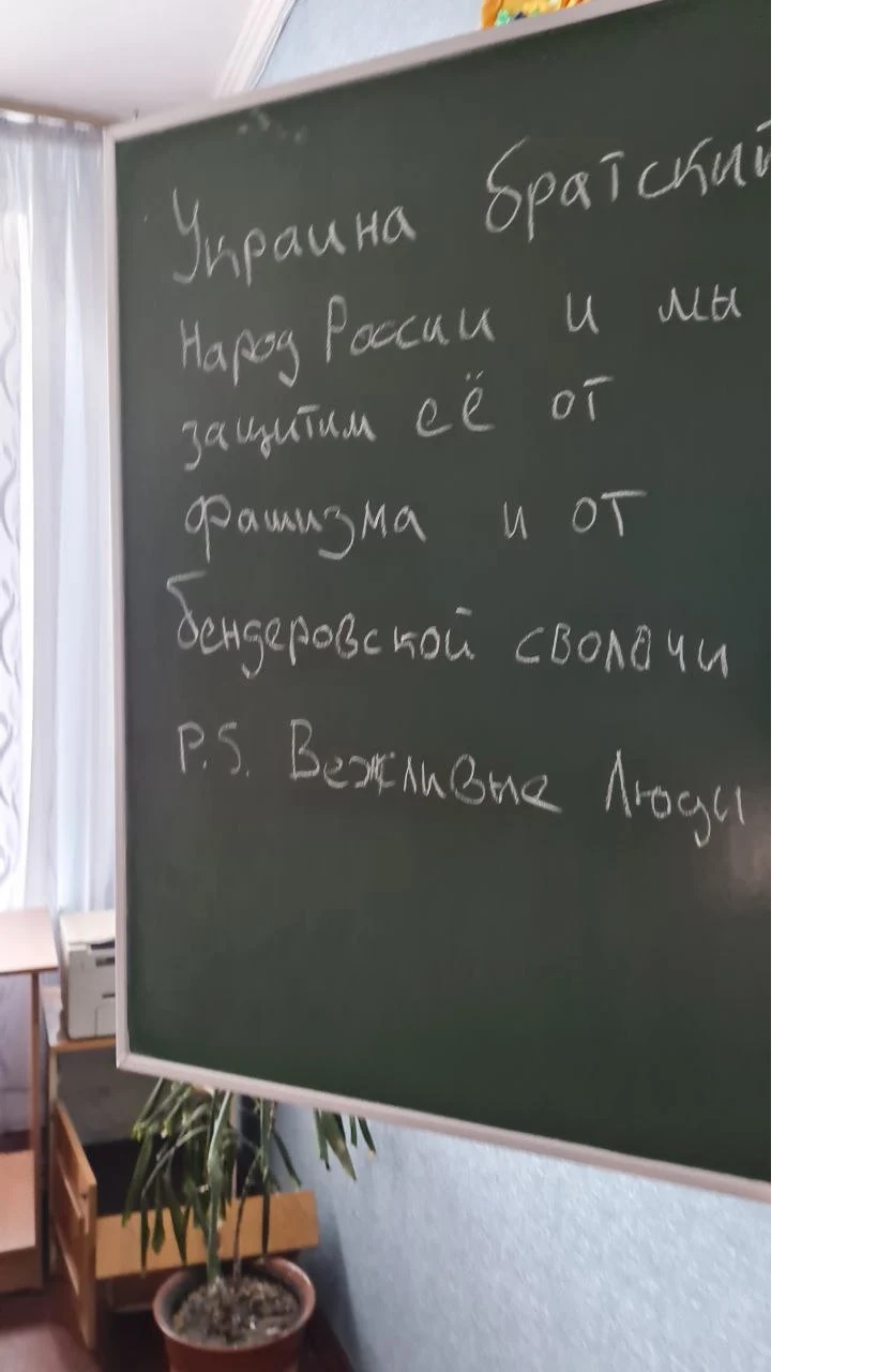 Inscription by Russian military "Ukraine is a brotherly nation of Russia and we will protect it from fascism and from Bendera's bastards