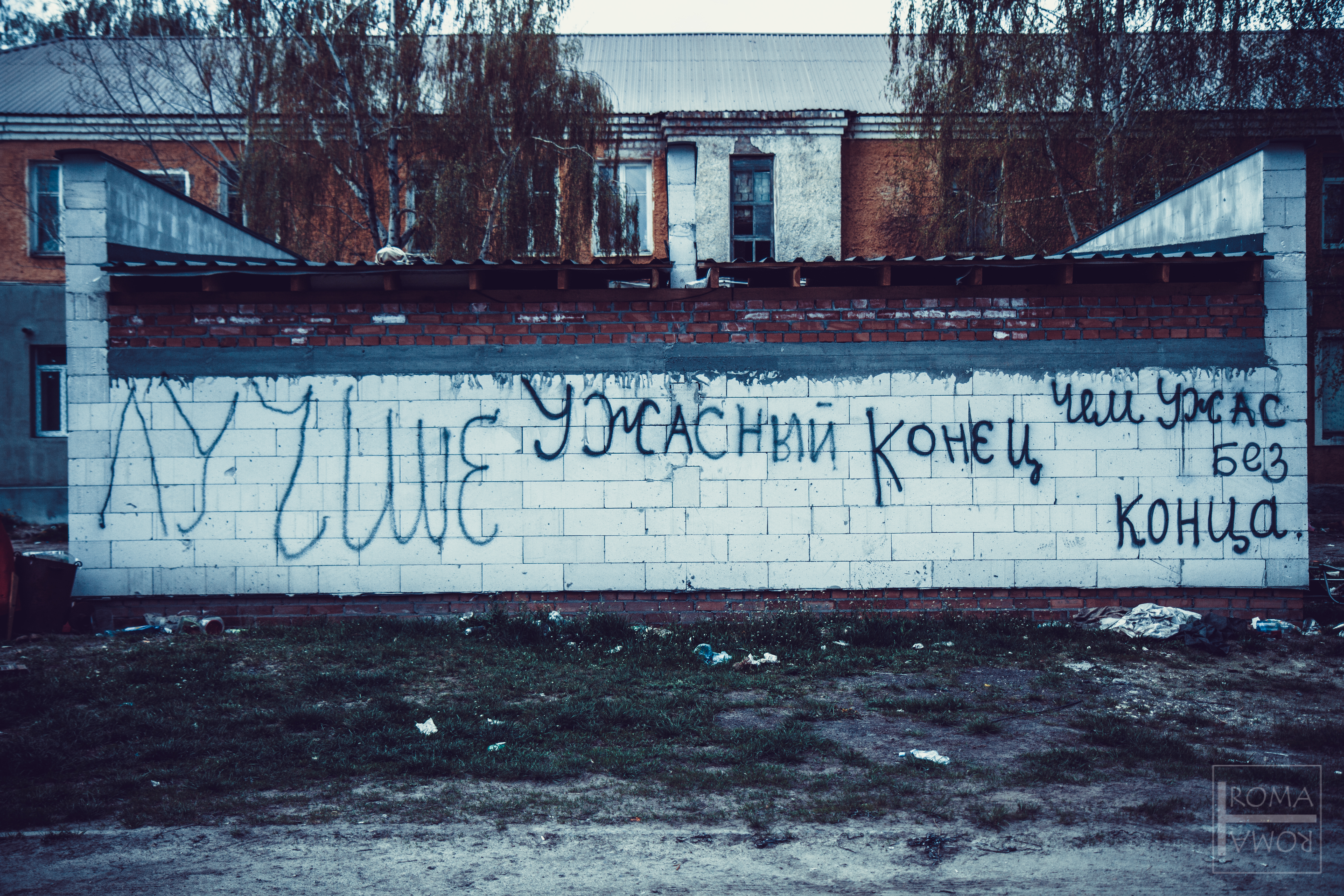 Inscription by Russian military "Better a terrible end than an endless terror."
